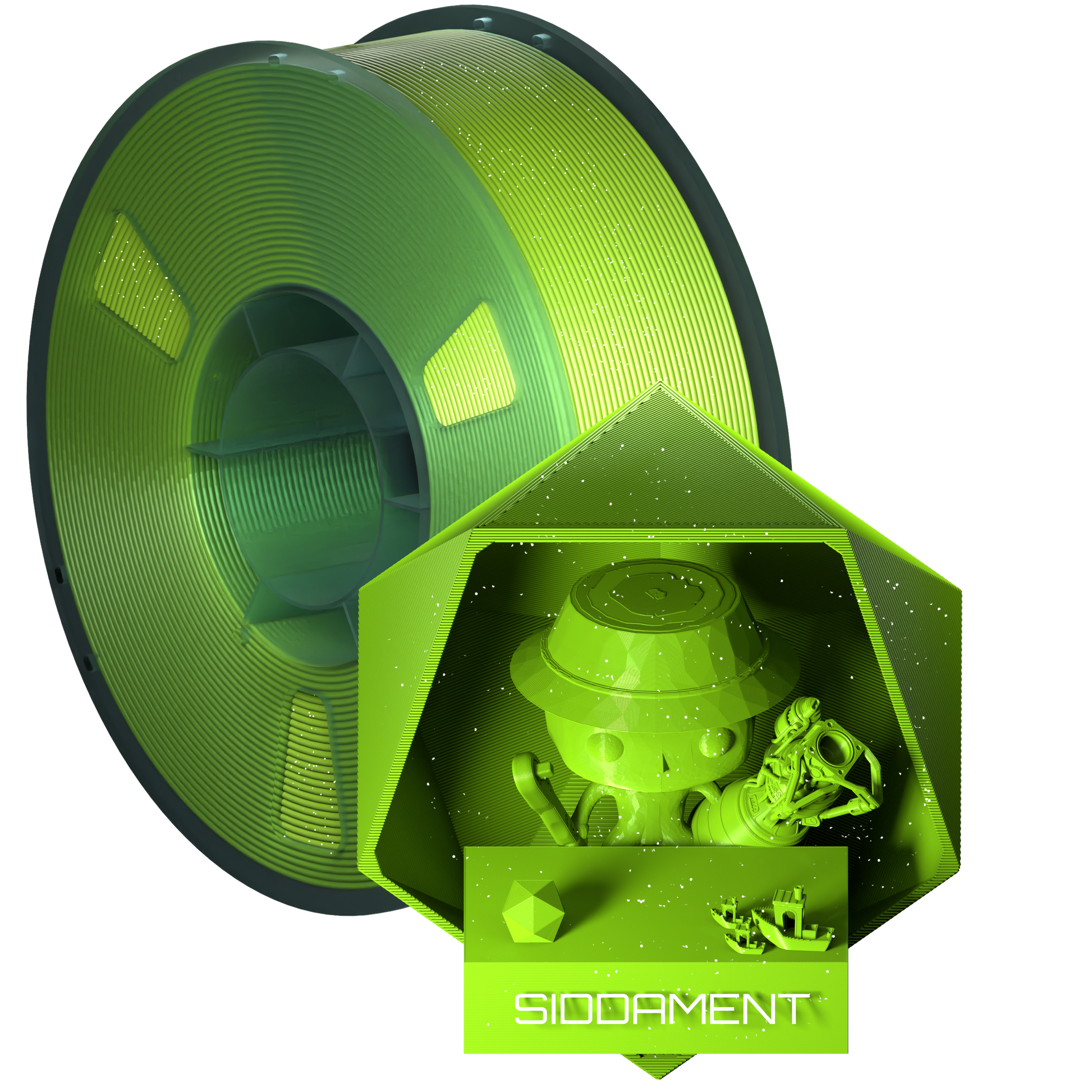 PC-ABS Filament – a cutting-edge 3D printing material designed for professionals and hobbyists alike. This 1.75mm diameter filament comes in a 1kg spool, offering remarkable tensile strength and impressive heat resistance, making it the perfect choice for a wide spectrum of projects... AND IT HAS SPARKLE